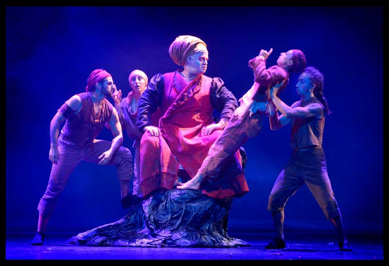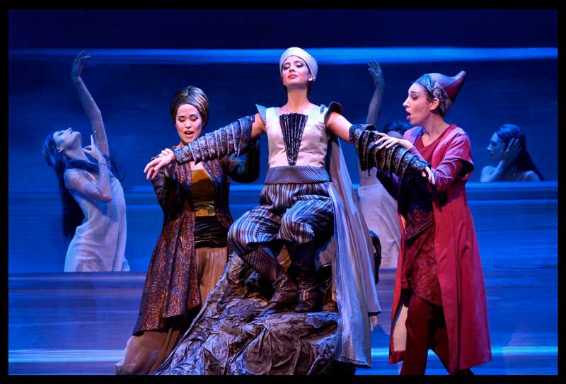אולי זה הילד שבי, אבל אקרובטים מכל סוג, ובמיוחד אקרובטי בדים, מעוררים אפילו בי, הסקפטית הידועה, התפעמות והתלהבות. אני נזכרת ביצירה אחרת לגמרי עם אקרובטי בדים, יצירת הפרינג' הישראלית, בורדל טוטאל, זוכת קיפוד הזהב, שנבטה בגלל שלאנשי הקרקס הישראלים היה משעמם בעונת המלפפונים, כלומר בחורף. אלא ששם האקרובטים הפכו לשחקנים בהצגה, מהמפגן החזותי למפגן הרגשי, ואילו אצלנו, הזמרים הופכים לאקרובטים, כאשר שתי הזמרות בתפקיד המכשפות נתלו באוויר ושרו את התפקיד שלהן כשהם מועלות ומורדות ומוזזות על טרפז. קודוס לטלי קצף ולניצן אלון על האומץ והביצוע המספק ואפילו הטוב בפוזיציה כזו. מרט מתבדח שרק פה בארץ מעיזים לעשות דבר כזה… אני מזכירה שאכן בסצנת התזמורת על הנדנדה בווצק, בארץ ישבו על הבמה נגני תזמורת אמיתיים ואילו בחו"ל זו היתה תזמורת בצורת כשאת התפקיד עצמו ניגנו מהפיט. ויתר האקרובטים, אולי תקראו להם קופידון, אולי תקראו להם השדים העוזרים של המכשפה התמנון, אבל שחקנים בעלילה הם לא. ייצוג שטוח, יפה מאוד וחסר רגשות. אנו מתפעמים, אלא שההתפעמות הזו תופסת רק את קצה סקלת ההתפעמות שלנו שמתחילה ב-WOW וירטואוזי ונעה אל שיא הבעת הרגשות. שתי צורות קתרזיס שמביאות אותנו כה רחוק זו מזו. אחת ליופי והשניה לאמת. ובכל זאת, אנו מעדיפים שהן יפגשו באמצע. לא כדי ליהנות משני העולמות. אלא מהעולם השלישי. מהכוליות. אולי בגלל זה מיתוס לא יכול להיות מגולם כהיבט חזותי, סגנוני בלבד. כי מיתוס הוא בסיס להנבטת אמת. לא להנבטת יופי. ובמקרה שלנו, הוא הסיפור שסיפרו הרומאים בתעמולה שלהם נגד אויביהם אנשי קרתגו כשרצו לתרץ את שורש האיבה בין שני העמים בימי מלחמות חניבעל. יופי יכול להיות רק מוצר נלווה.