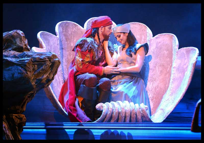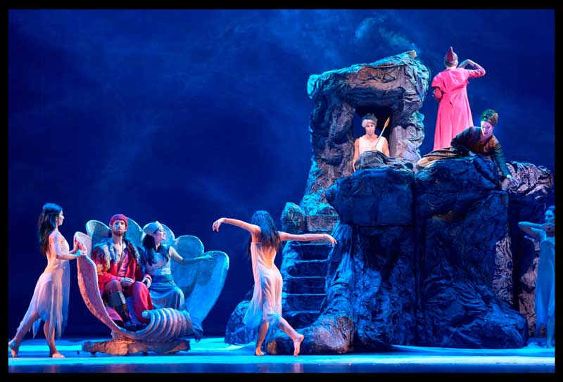 ואם אנו בעניין של סדרי גודל, בואו נדבר על הצבה של אופרת ברוק קאמרית באולם הכה גדול של המשכן לאמנויות הבמה. זה כבר נעשה כאן עבר ובעוד מקומות בעולם, כך שזו לא בחירה לא רגילה ובכל זאת, אני תוהה מהי הבחירה הנכונה מבחינת הדינמיקה של הצליל. מצד אחד צליל קטן מדי אולי לא יישמע מספיק או לא יישמע מספיק מרשים. מצד שני, צליל גדול מדי חוטא לאופי היצירה. התזמורת לכשעצמה פטורה מההתלבטות הזו עקב היותה תזמורת ברוק מלכתחילה והשימוש בכלים אותנטיים מדייק את הצליל לא רק מבחינת סגנונו אלא גם מבחינת עוצמתו. אבל הזמרים והמקהלה, רגילים לשיר יצירות רומנטיות בומבסטיות הרבה יותר. יש להלך על חבל דק ולהיזהר לא לחצות את הקו לעבר אותה בומבסטיות, מה שלרוב קורה כאן, אבל בגזרת המקהלה, זה עדיין לא היה נקי לגמרי. אולי מפאת הרצון להאריך את היצירה הקצרה הזו, המנצח איתן שמייסר בחר להוביל את התזמורת בקצב איטי ובטוח, שגם אם היו בו רגעים נמרצים לעיתים, הם שירתו בעיקר את הספקטקל ולא את הדרמה. יתר הקטעים היו לרוב תפלים וחסרי התבלין הברוקי המיוחד, שאמנם אינו סערה רומנטית, אך השובבות, ההומור והעליצות שבו, יש בהם כדי להפיח רוח חיים בעלילה. הנה כי כן, אם העיצוב עסק בעיקר בסלעים והאנשים הקטנים שעליהם, גם בחירת הטמפו והדינמיקה לא הצילה את ההתרחשות. נגינת התזמורת היתה לא אחידה. בצד קטעים חבוטים ויבשושיים למפתיע, היו, ושוב בקטעי הספקטקל משום מה, קטעים מבריקים שהחזירו אותנו אי אלו מאות אחורה. גולת הכותרת, הסולו המשכנע של החליל.