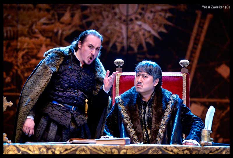 מי שקרא את הביקורת על דון ג'ובני, יודע על חיבתי לפאך הבאס פרופונדו ועל ציפייתי לביצוע של עוד תפקיד כזה באופרה שלפנינו, האינקוויזיטור הגדול. כאן גילם אותו הבאס האוקראיני איבגן אורלוב. האם הוא אוקטביסט (כלומר בס רוסי עמוק במיוחד). בתחילה הוא באמת נשמע מרשים מאוד עם כמה נמוכים מבעיתים וארוכים במיוחד, אך אחר-כך הוא לצערי התפזר מעט ולא הרשים.