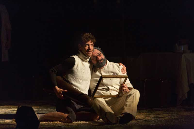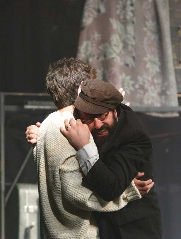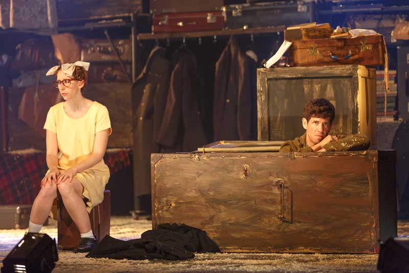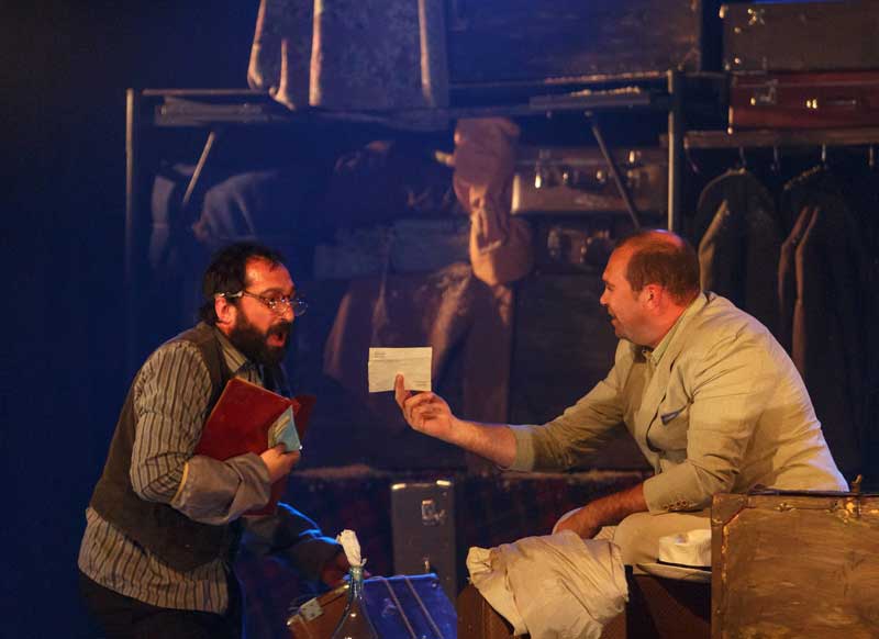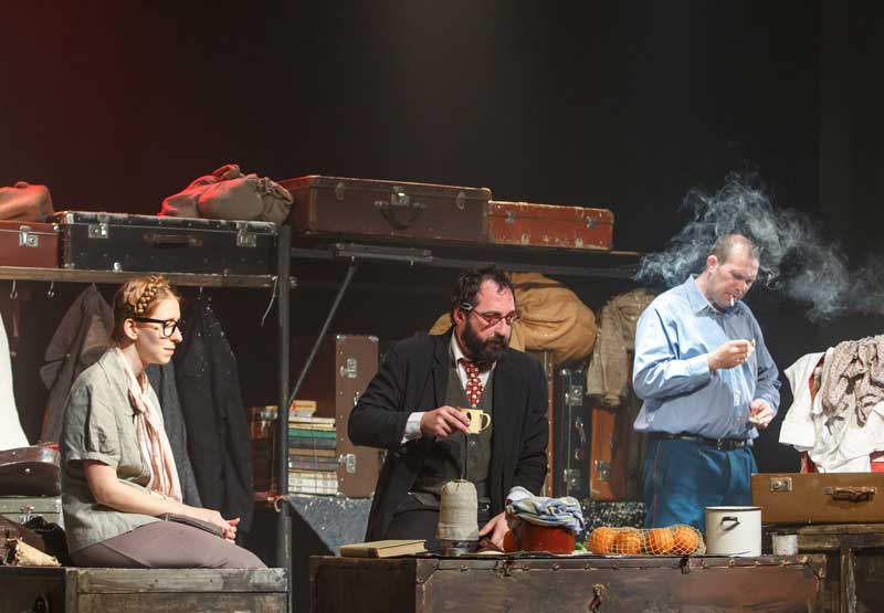 התפאורה בהצגה שלפנינו גם היא קיר. הוא נע קדימה ואחורה על פני הבמה, מגדיר חללים. יש מה שלפני ויש מה שאחרי. יש פה ויש שם. פנים הבית והרכבת מאחור שממנה מגיעים אנשים. פנים החדר במעונות והחוץ, שממנה מגיעים אנשים. מאחוריו לא רואים. הקיר הזה הוא כולו מזוודות ומעילים ועוד דברים ארוזים. זה המחסן שבו עובד האב. לא בדיוק. הוא מתעסק בדברים אחרים. הכול אומר מסע, גם כשנמצאים בבית. גם רהיטי הבית, הם תיבות. תיבות שבהם אורזים חפצים. תיבות שבהם אורזים אנשים. תיבות שבהם אורזים זיכרונות. בסוף ההצגה, כל המתים יוצאים מתוך ארגזים ומנגנים בכינור דמיוני. דוד בן ה-12 נכנס לתיבה. זה כמו הבית שלו. ילדים תמיד נכנסים לתיבות וחושבים שהן בית, הרבה לפני שהם מבינים שהבית הוא לא מקום, אלא הזיכרונות. בתיבות ההן גם אורזים חלומות. את אוסף הגלויות של המקומות הרחוקים שבהם חולמים להיות. דויד גונב כמה ונותן מתנה לאשתו לעתיד, טניה. כנראה שחתן טוב הוא זה שמציע את החלומות הטובים ביותר. ככל שחולמים יותר, אפשר להגיע רחוק יותר.