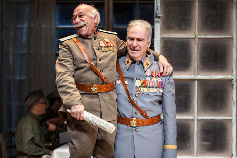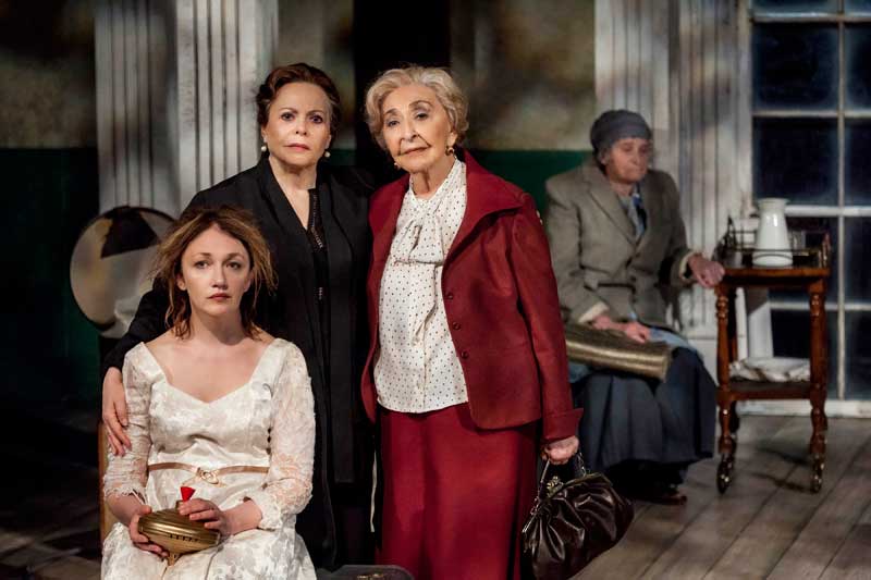 שלוש אחיות, קופרודוקציה של תיאטרון הקאמרי ותיאטרון הבימה. הצגת ביקורת 9.4.17. מאת: אַנְטוֹן פַּאבלוֹבִיץ' צֶ'כוֹב, תרגום, עיבוד ובימוי: חנן שניר, תנועה: מירי לזר, תפאורה ותלבושות: פאולינה אדמוב, מוסיקה: יוסי בן נון, תאורה: מאיר אלון. משתתפים: גילה אלמגור – מאשה, ליא קניג – אולגה, יבגניה דודינה – אירינה, רמי ברוך – אנדרי סרגייביץ פרוזורוב, דב רייזר – קוליגין, אלי גורנשטיין – וירשינין, עזרא דגן – צ'בוטיקין, שלמה וישינסקי – פרפונט, עודד לאופולד – סוליוני, מאיה מעוז – נטשה, יגאל שדה – טוזנבאך, דבורה קידר – אנפיסה, זיו קלייר – פדוטיק, טל וייס – רודה.