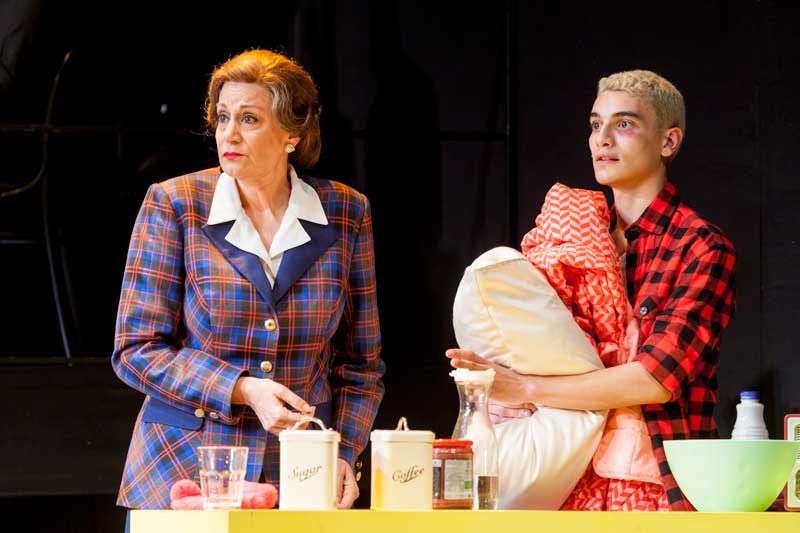 הקאסט: מורדי גרשון כארנולד היה כמעט מושלם, הומואית גאה, שלא מוותרת על גינוניה הנשיים ולא על עקרונותיה. אופס, עברתי לאוחצ'ית. סליחה. אני יודעת הרבה שפות זרות… טוב, נחזור לעברית… מיקי קם מדויקת ומרגשת כ-Jewish mother קלאסית עם טוויסט. כמעט שמעתי בקולה את האנגלית הניו-יורקית שהיא היתה מדברת, אם זה היה מוצג באנגלית. ובסוף ולמרות הכול ולמרות שזה כבר לא רלוונטי, היא מקבלת את הבן שלה כמו שהוא, כן, אחרי שהיא אמרה לו שהומוסקסואליות זו מחלה (הלללללו… 2017, מישהו) ושאם היא היתה יודעת שהוא ייצא הומו היא לא היתה יולדת אותו (כנ"ל) ואחרי שהוא אמר לה שמי שלא נותן לו כבוד ואהבה אין לו מקום בחיים שלו (כפיים!!!), ואחרי שהיא לא מבינה איך הוא משווה את האלמנות שלה, לאלמנות שלו (2017… מישהו). ההצגה הזו עוברת את מבחן הדמעות רק בזכותם. והצלע השלישית, גיל סרי המבריק בתפקיד הבן המאומץ דיוויד. ממש כאילו יצא מסיטקום אמריקאי. הילד גונב את ההצגה עם טיימינג מושלם. בתפקיד אלאן בן הזוג הדוגמן, ליהקו פה את הדוגמן והשחקן עומר דרור הבנוי לתלפיות שהיה גם הוא במחנה הטובים. לא אהבתי עם זאת את אקי אבני בתפקיד אד המבולבל. זה הזכיר לי את התפקיד הלא מרשים שהוא עשה בחסד מופלא של עמוס גוטמן זצ"ל, בדיוק על אותה משבצת. והנשיקה שהוא הרביץ עם ארנולד. ארנולד שיחק אותה, הוא לא. יהיה מעניין לראות את רבקה מיכאלי בדמות האמא בקאסט השני, האם גם היא תחזור על תפקידה באותו סרט. גם את ריקי בליך בתפקיד לוריין, אשתו של אד, לא אהבתי. אני לא חושבת שניגשו נכון לדמות הזו. היא היתה מלוקקת מדי עד כדי כך שהיא כבר לא נראתה אמיתית, כלומר אמינה.