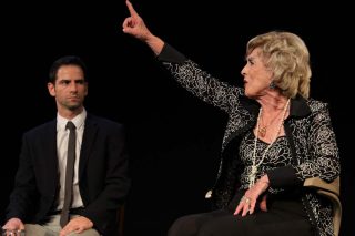 אני רוצה להתייחס כעת למחזה הספציפי שלפנינו. מחזהו של היהודי הדרום אפריקאי ויקטור גורדון. הוא מועלה במסגרת פרויקט תיאטרון קריאה של תיאטרון מיקרו הירושלמי. ולמרות שלרשות השחקנים המעולים בהנהגת מרים זוהר ורמי ברוך עמדו רק 6-7 חזרות, הם כבר ידעו את כל הטקסט בע"פ ואם לא היו אומרים לנו, לא היינו יודעים… ולמרות תצוגת המשחק המשכנעת והמרגשת של זוהר (אסתר, ניצולת שואה עשירה, התורמת לתחרות מנצחים) ושל ברוך (מוריס, המנהל האמנותי של התחרות), החן של עדי ביילסקי (מזכירת המנהל האמנותי) והעציציות (המכוונת) של ניב פטל (אסף, מתחרה ישראלי סורר שהגיש תוכנית מיצירות ואגנר, תוך ניצול פרצה בתקנון ויצר סקנדל), המחזה עצמו מבוסס על עלילה סכמטית, חד ממדית וצפויה כמעט, שכל כוחה, כפי שראיתם ב-1800 המילים לעיל הוא בהצגת הוויכוח, כדי שנוכל להתווכח. אסייג מעט לגבי החד ממדיות. למחזה הקצר עלילה ראשית אחת, עיקרית, אבל ניסיון לשזור גם עלילה משנית של ניסיון של ניצולי השואה להחזיר לעצמם רכוש אבוד שנלקח מהם במלחמה, כאן, כינור יקר שהיה רכושה של אסתר ונעלם באחד מביקורי הגסטפו.
