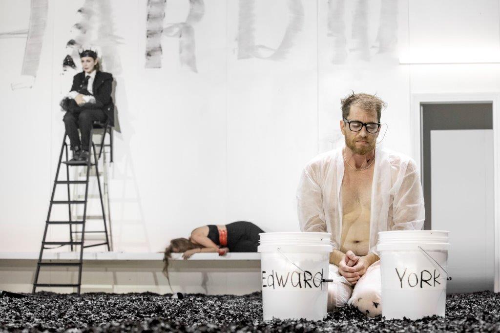 "אין לי ארץ אחרת" (מנור/אלאל) ישירו אן ואליזבת' בתחילת המערכה השנייה (הרביעית במקור). ככה הרגישו אולי מפגיני קפלן, בעיקר אנשים המזדהים כשמאל וגם מי שלא, נצבע כשמאל על-ידי השליט וחבריו השחורים, סליחה, הדתיים והחרדים… פרשנות שלי, התיאטרון עוסק במיתוס לא במציאות… וחלילה אל לו ללכת נגד השלטון במיוחד כעת כשמחפשים מאיפה לרצוח תקציבים… ההצגה הזו מתחילה בהיר בהיר. אדוארד שמש העמים מופיע בחליפה צהבהבה. שמש חיוורת כבר, קצת חולנית, אבל עדיין בהירה, המקהלה ללא ז'קטים, חולצות לבנות. הילדים של אדוארד גם כן לובשים לבן מלא או חלקי. ולהבדיל אלפי הבדלות הרוצח לובש חליפת מז"פ לבנה בסצנת רצח המסור. מנקה אמרנו כבר וניקיון זה לבן… אז מי כאן השחור ומי הלבן, מי הטוב, התמים ומי ההפך הגמור. סוס. סוס, מבקש ריצ'רד במשפט המפורסם במחזה "הממלכה שלי בעד סוס". כי גנבו לו את סוס הצעצוע שלו שהוא גנב בעצמו מהילד דוכס יורק. ועם הצעצוע הזה הוא הסתובב כמו אופנוען צורח במגפון… אני לא יודעת אם אני אוהבת את ההגחכה הזו. זה כבר נראה לי מוגזם. אולי נרקיסיסט הוא הרבה פעמים כמו ילד שמחפש לפצות על הצעצוע שאיבד בילדות… אם אפשר להתנסח ככה… אבל הוא לעולם לא מאבד פאסון, במיוחד בינו לבין עצמו.