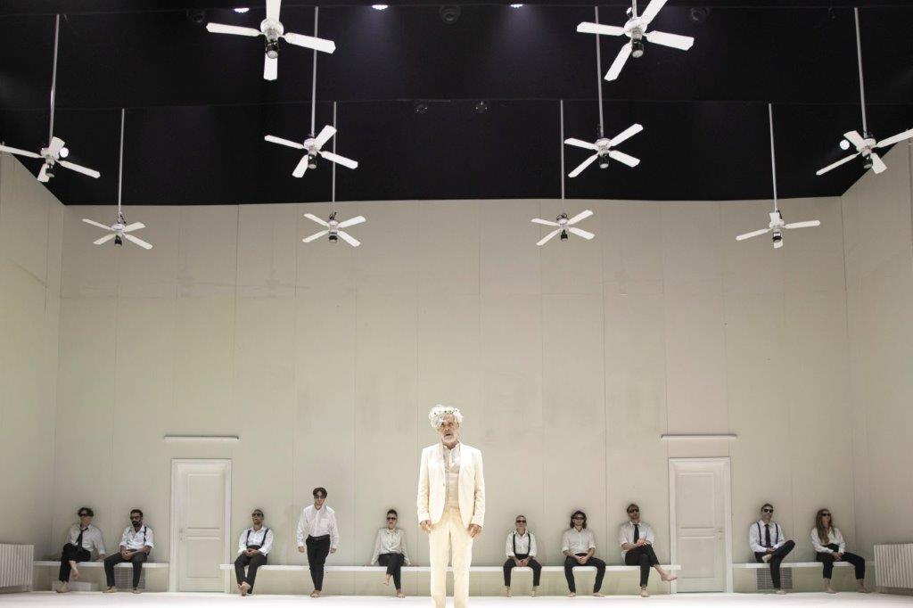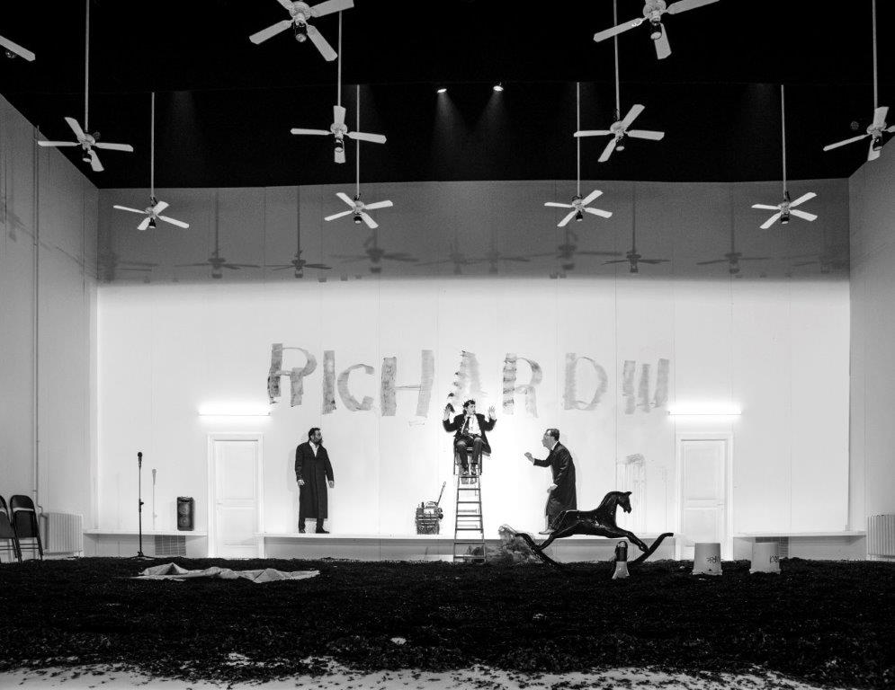 ריצ'רד ה-3, בתיאטרון גשר, 7.3.24. מאת: ויליאם שייקספיר, בימוי: איתי טיראן, תרגום ופס-קול: דורי פרנס, תפאורה: ערן עצמון, תלבושות: יהודית אהרון, תאורה: גלב פילשטינסקי, תנועה: רננה רז, סאונד: מיכאל ויסבורד, הפקה מוזיקלית: עמית פוזננסקי, וידאו: ויקטור סורוקין, עוזר במאי: יואב דגן. שחקנים: יבגניה דודינה (ריצ'רד), דורון תבורי (המלך אדוארד / הדוכסית, אימם של אדוארד, ריצ'רד וקלארנס), ישראל (סשה) דמידוב (קלרנס / סטנלי), גלעד קלטר (בקינגהם), מיכל ויינברג (אליזבת'), לנה פרייפלד (אן), אלכסנדר סנדרוביץ' (הייסטינגז), פאולו א. מואורה (קייטסבי), אלי מנשה (ברקנברי), נועם טל (ריברז / אדוארד ה-5), שיר סייג (גריי / יורק הצעיר), שלומי ברטונוב (הרוצח ג'יימס טירל), אורי יניב/מקסים רוזנברג (הבישוף מאליי).